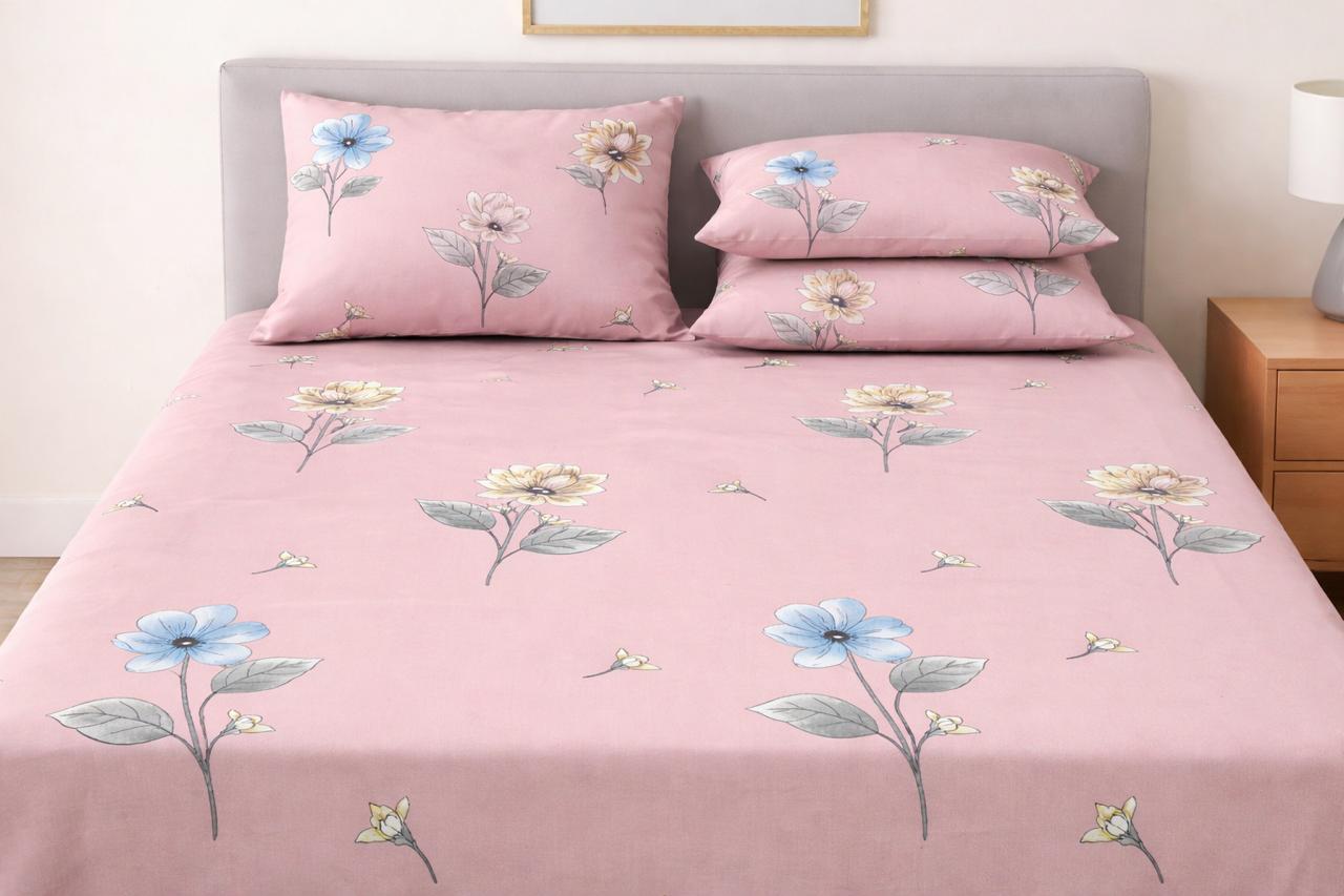 Set Composition: 1 Double Bedsheet and 2 matching Pillow Covers (as shown in the gallery).